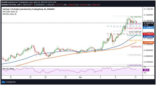 Vechain is 79.41% below the all time high of $0.28.