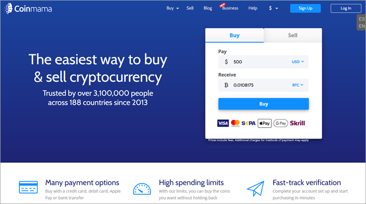 Coinmama has some of the highest credit card buying limits among all credit card brokers.